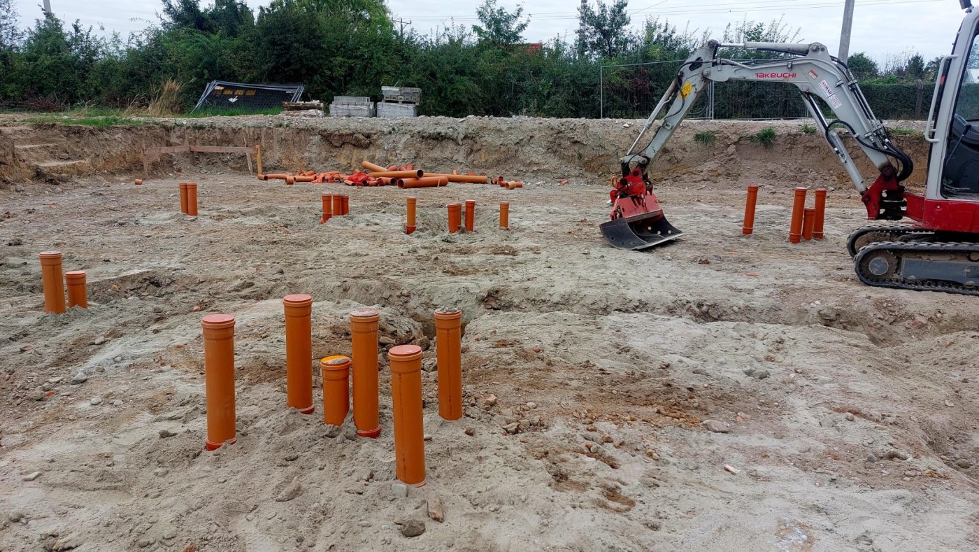 Na Osiedlu Brzozowym 3 dzieje się! Właśnie trwa układanie pierwszych instalacji hydraulicznych pod posadzkami. To jeden z kluczowych etapów budowy, który przygotowuje mieszkania do kolejnych prac budowlanych.